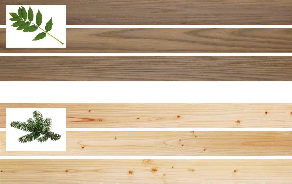 - Le frêne : bois dur imputrescible après traitement thermique, sans ajout de produit chimique.
